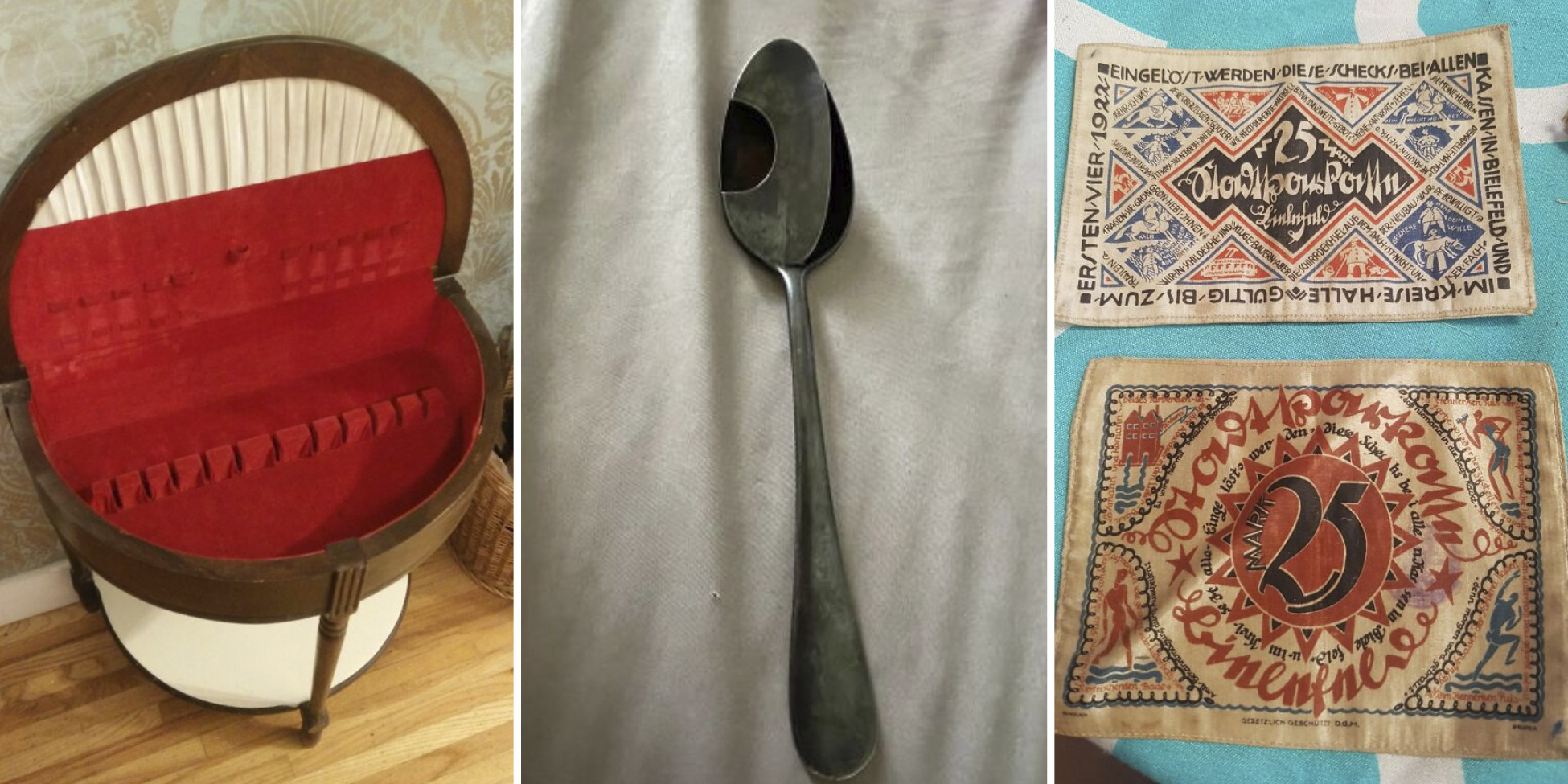 Что это такое и как используется? Иногда в руки попадаются старые вещи, о назначении которых можно только гадать. Необычные инструменты, странные детали, забытые бытовые приспособления — будто эхо прошлого века. Для таких находок есть даже отдельный сабреддит, где пользователи помогают друг другу разобраться. Вот 20 интересных вещей, которые поставили многих в тупик, но их всё же идентифицировали. 1. Какое-то приспособление с ручкой. Фото: gordone1 / Reddit Инструмент был предназначен для скручивания газет в «полено» для камина. Ответ 2. Ещё одна интересная находка в антикварном магазине. Фото: HappyCapybara / Reddit Здесь всё просто: это держатель для салфеток. Сложенные в треугольник и вставленные в отверстия салфетки образуют форму зонтика. Ответ 3. Старинное кольцо с буквами, которые не позволили выявить принадлежность к какому-либо бренду или производству. Найдено в саду и очищено от налёта времени. Фото: gamer0981 / Reddit Это траурное кольцо ранней викторианской эпохи. Инициалы принадлежат умершему близкому человеку. Обычно их делали из золота и покрывали чёрной эмалью. Ответ 4. Наконечник этого приспособления, вероятно, выполнен из кроличьей шерсти, а ручка — будто из бакелита. Фото: Reddit Это пуховка для нанесения пудры на лицо. Ответ 5. Расширяющаяся металлическая форма с цепочкой и крышкой. Верхняя часть снимается, но крепится на шарнире. Когда крышка снята, основание можно раздвинуть. Фото: Blahaj_shark_boy / Reddit Это горлышко расширяемой сумки. Просто отсутствует сама тканевая часть. Ответ 6. Необычная ложка. Зачем ей дополнительная пластина и вырезом? Фото: Stingray_621 / Reddit Это старинная суповая ложка для джентльменов с усами. Ответ 7. Старый кожаный ботинок с длинными металлическими шипами, около 10 см. Кожа старая и жёсткая, подошва из дерева и массивными заклёпками. Для альпинистского снаряжения слишком неудобно. Фото: daUmpire / Reddit Такие ботинки служили для колки каштанов. Ответ 8. Странная тумбочка с обивкой внутри. Для чего она? Фото: cannafriend / Reddit Такие миниатюрные комоды предназначались для хранения столовых приборов из качественного серебра. Кончики ножей вставлялись в отверстия на крышке, а другие приборы располагались под ними. Ответ 9. Похоже на какой-то ключ или инструмент для прокола. Фото: kriskristensen / Reddit Это щипцы для солений и оливок. При нажатии на красный бакелитовый наконечник «клешни» раскрываются. Ответ 10. Необычные тканевые фантики. Найдены при сносе дома вместе со старыми деньгами. Фото: nzjester420 / Reddit Это так называемые нотгельды или немецкие деньги чрезвычайных обстоятельств. В данном случае — эквивалент 25 марок. Такие заменители выпускались в период, когда в Центральном банке не хватало реальных наличных денег. Изготавливались из шёлка или льна. Ответ 11. Очень маленькая подвесная полка. Фото: biglilbunz / Reddit Это буквально полка для большого коробка спичек, чтобы они всегда были рядом со свечами или каминами. Ответ 12. Жуткая сетка-клетка. Для картошки фри? Фото: Earffff / Reddit Винтажный держатель для мыла, также известный как «сетка-мыльница». Этот инструмент с небольшими кусочками мыла внутри промывали в воде для образования пены. Ответ 13. Металлический предмет в форме капли, имеет кнопку или нажимной механизм и крошечное отверстие сверху. Фото: Afraid-Employee118 / Reddit Это винтажный атомайзер для духов Marcel Franck Charmante в стиле ар-деко 1930‑х годов. Ответ 14. Старое механичес