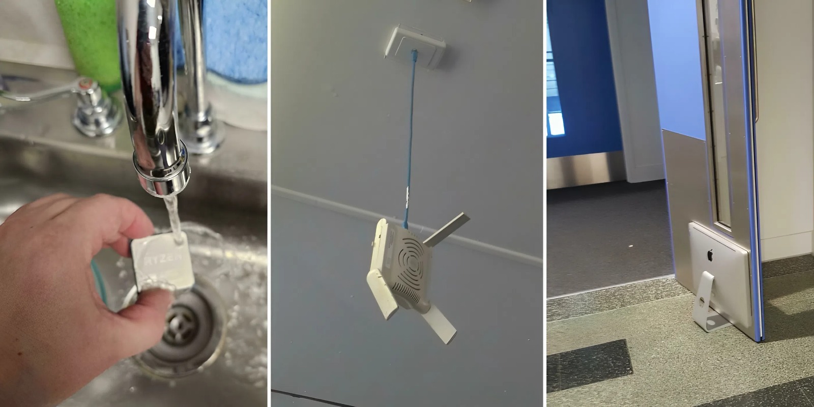 Иногда лучше довериться специалисту. Техника создана, чтобы облегчать жизнь, но иногда всё выходит наоборот — особенно когда за дело берутся слишком уверенные пользователи. В этой подборке — 22 фото, где гаджеты стали жертвами странных идей, лени или банального недопонимания. Каждый кадр — маленький урок о том, как не стоит обращаться с электроникой. 1. Пользователь пролил кофе на свой ноутбук и поместил его в духовку, чтобы высушить. Фото: smarthawk / Reddit 2. Mac не поддерживает Windows, но, по крайней мере, поддерживает Doors. Фото: BateauSai / Reddit 3. Когда розетка нужна всем и сразу. Ну хоть зонтик пригодился. Фото: Cesalv / Reddit 4. С переходниками тоже шутки плохи. Фото: Reddit 5. А вы думали для чего провода под столом торчат? Фото: sarge‑m / Reddit 6. Когда дал кому-то ноутбук поиграть в Team Fortress 2. Фото: Reddit 7. Какой-то добрый человек нашёл на полу карточку памяти и теперь ищет владельца. Фото: LeveledWorm / Reddit 8. Как запретить школьникам использовать разъёмы на корпусе ПК? Залить все порты клеем. Фото: BruhLandau / Reddit 9. Лучше бы это была чья-то шутка с диодной лентой. Фото: Occasional-Nihilist / Reddit 10. Кабель-менеджмент — это икусство (иногда арт-хаус). Фото: Ofeiven / Reddit 11. Разгон ПК почему-то не удался. Фото: Howden824 / Reddit 12. Аккумуляторные «подушечки» вынесли нижнюю крышку. Фото: enigma_0Z / Reddit 13. Вот что значит горячая клавиша. Фото: Reddit 14. Когда расхлябанные розетки уже совсем не держат вилки. Фото: Reddit 15. Правильно ли установлен этот процессор? Фото: Fancy-Styles / Reddit 16. Чьё-то «гениальное» решение: зарядка смартфона через Qi от своего же аккумулятора. Фото: Kevin80970 / Reddit 17. Кто-то устал менять батарейки CR2032 в датчике открытия двери. Фото: theBarkingSpider / Reddit 18. Не меняйте оперативку при плохом освещении. Фото: Excellent-Milk-2619 / Reddit 19. Два — для надёжности. Фото: Cesalv / Reddit 20. Когда попросили «почистить процессор». Фото: 1Arcite / Reddit 21. Роутер в школе (а как будто в Half-Life). Фото: curionsu / Reddit 22. А вот это какие-то очень странные дела. Что произошло? Пишите свои варианты в комментарии. Фото: LeafyBasil366 / RedditРуки из правильного места: 16 потрясающих работ из дерева от пользователей СетиВсё крючком: 20 вязаных шедевров от пользователей Сети