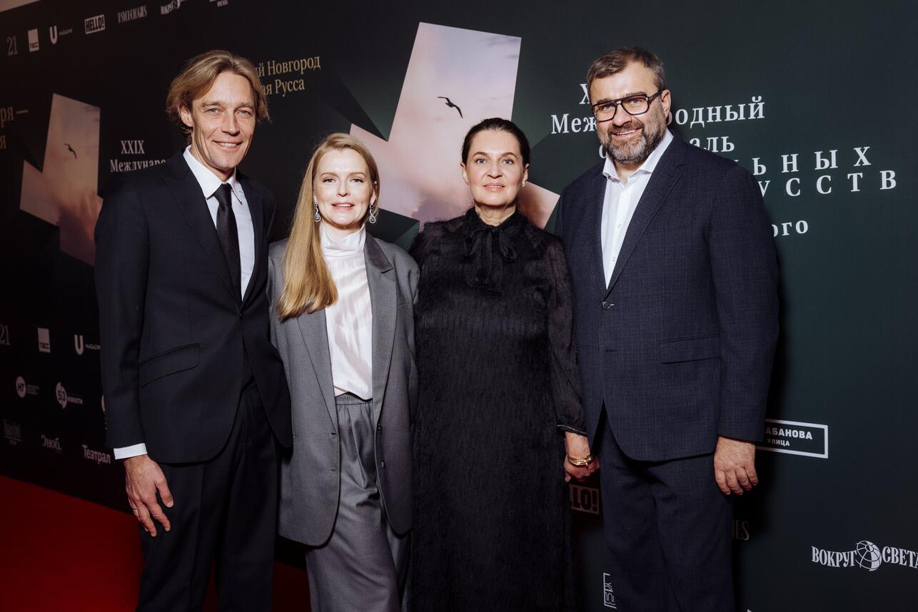 Максим Королев (генеральный продюсер Фестиваля) с супругой Надеждой Королевой и Михаил Пореченков (Народный артист России, Президент Международного фестиваля театральных искусств имени Ф.М. Достоевского) с супругой Ольгой Пореченковой Фото: Анна Темерина