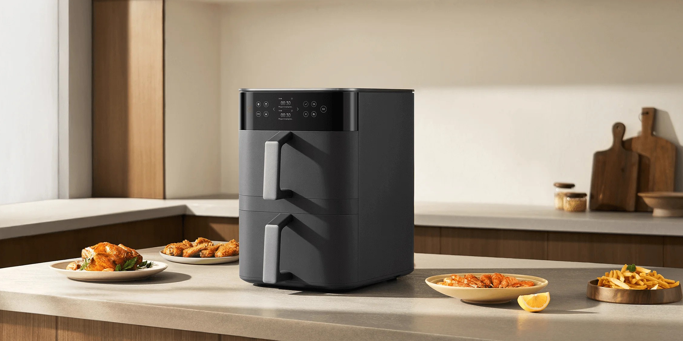 Он может готовить сразу четыре блюда. Xiaomi представила в Европе свой «двухэтажный» аэрогриль Smart Double Stack Air Fryer 12L. Устройство отличается конструкцией с двумя корзинами, расположенными друг над другом. Их можно настраивать на разные режимы или синхронизировать с помощью одной кнопки. Каждая выдвижная чаша имеет два слоя, что позволяет готовить сразу четыре блюда одновременно. Общая ёмкость составляет 12 литров, а мощность новинки достигает 2 800 Вт. Изображение: Xiaomi Аэрогриль поддерживает температурный диапазон от 40 до 230 градусов и предлагает 14 предустановленных режимов, включая приготовление картофеля фри, сушку и разогрев готовых блюд. Управление осуществляется через цветной сенсорный дисплей, а также через приложение Xiaomi Home, где можно найти рецепты, настроить таймер до 24 часов и активировать режим сушки. Изображение: Xiaomi Несмотря на внушительный объём, устройство оказалось компактнее предшественников: его ширина на 35% меньше по сравнению с моделью Dual Zone Air Fryer 10L. Полные размеры новинки такие: 520 x 335 x 457 миллиметра. Корзины и аксессуары можно мыть в посудомоечной машине, что упрощает уход. Изображение: Xiaomi Новинка уже доступна в онлайн-магазинах Xiaomi в Нидерландах, Испании и Франции по цене 200 евро (≈17 800 рублей). Xiaomi выпустила магнитный пауэрбанк толщиной всего 6 мм — это кредитка в мире внешних аккумуляторовПредставлен Honor Magic 8 Pro Air — полноценный флагман в ультратонком корпусе